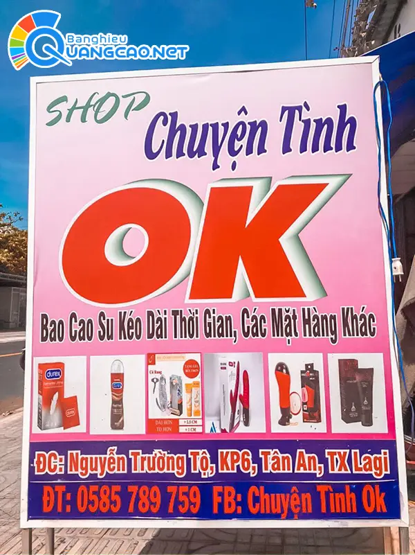 Mẫu bảng hiệu shop bao cao su bằng bạt hiflex