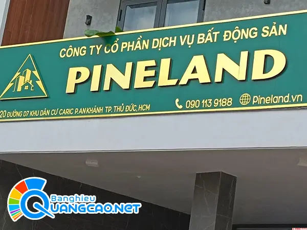 Mẫu bảng hiệu quảng cáo dịch vụ bất động sản Pineland bằng chữ nổi nền alu